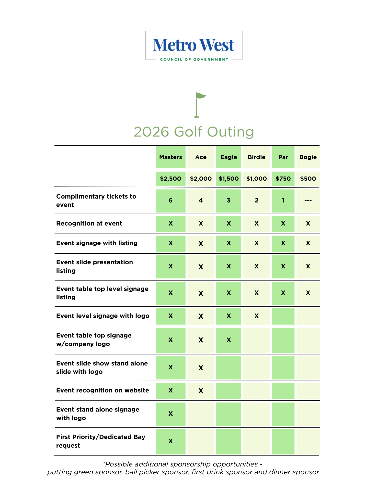 Our Annual Golf Outing is all about networking! Members and business partners come together to play a round of golf, compete for prizes and share a meal in a fun-filled atmosphere! Take a chance and win one of many raffle baskets donated by the Metro West municipalities.